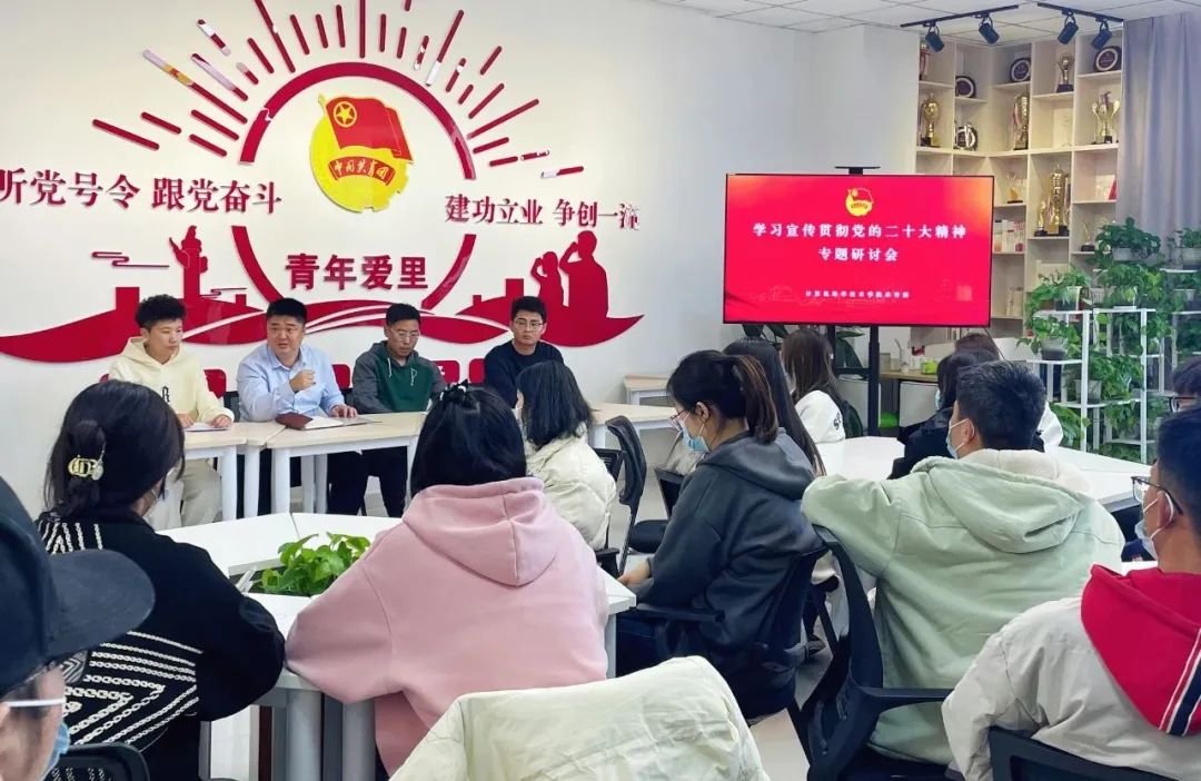 3月2日,太阳集团网tyc9728共青团在青年爱里开展学习宣传贯彻党的二十大精神专题研讨会,学院团总支书记赵巍伟、副书记白洋、兼职团干部乔雅洁、王子涛以及学院各团支部书记、副书记(班长)、学生干部代表、社团负责人参加研讨会。