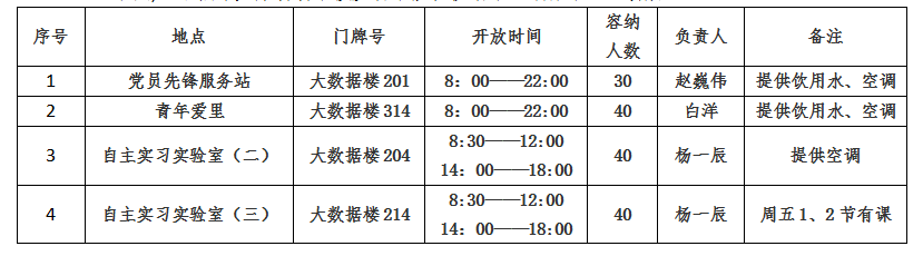 1.为尽可能让更多的同学使用空调教室资源,请同学们进出教室切勿喧哗,共同营造安静的学习氛围;