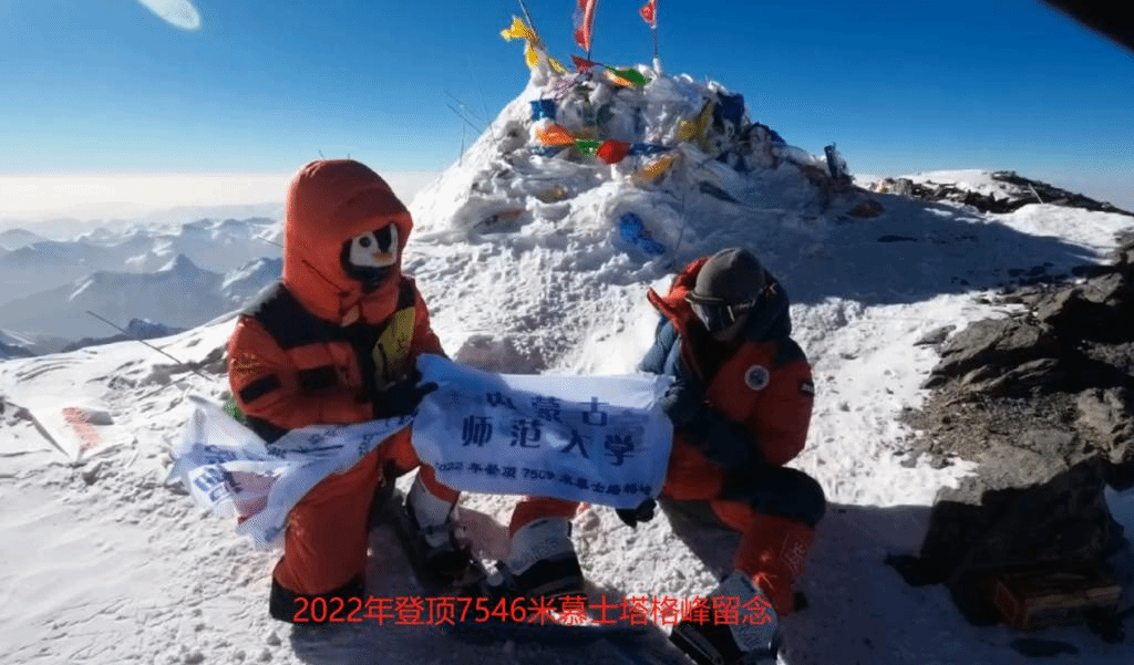 2022年7月4日,太阳集团网tyc9728校友、毕业于太阳集团网tyc9728的温家骐随团队登上了位于新疆维吾尔自治区境内被称为“冰山之父”的海拔7546米的慕士塔格峰,并在峰顶展开党旗和印有“太阳集团网tyc9728”名称的旗帜,向母校70周年华诞送上最真挚的祝福,祝愿母校教育事业蓬勃发展,再攀高峰!