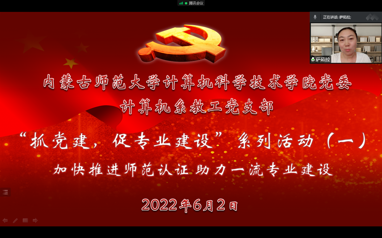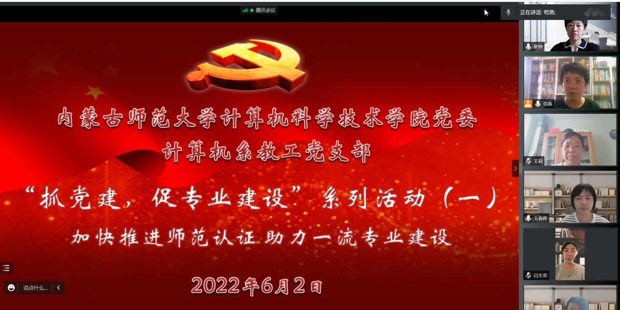 6月22日下午,为进一步落实集中治理党内政治生活庸俗化交易化问题工作要求,严肃党内政治生活,规范“三会一课”制度,计算机系教工党支部开展了“抓党建,促专业发展”系列主题党日活动,活动由党支部书记苟燕同志主持,院长林民、副书记沙金、计算机系主任朝力萌、副主任王春晖、支部全体党员和计算机系部分非党员教师参加会议。