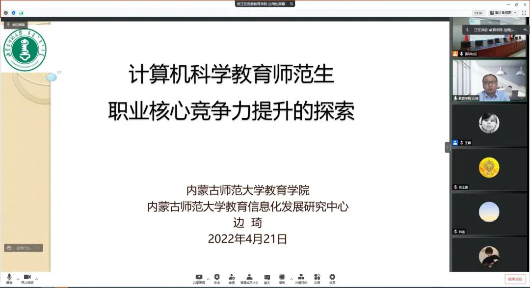 4月21日,太阳集团网tyc9728邀请1997届优秀毕业生、现教育学院副院长边琦教授为全院教职工进行了学科建设专题讲座。讲座采用线上线下相结合的形式展开,由院长林民教授主持,主题为“计算机科学教育师范生职业核心竞争力提升的探索”。