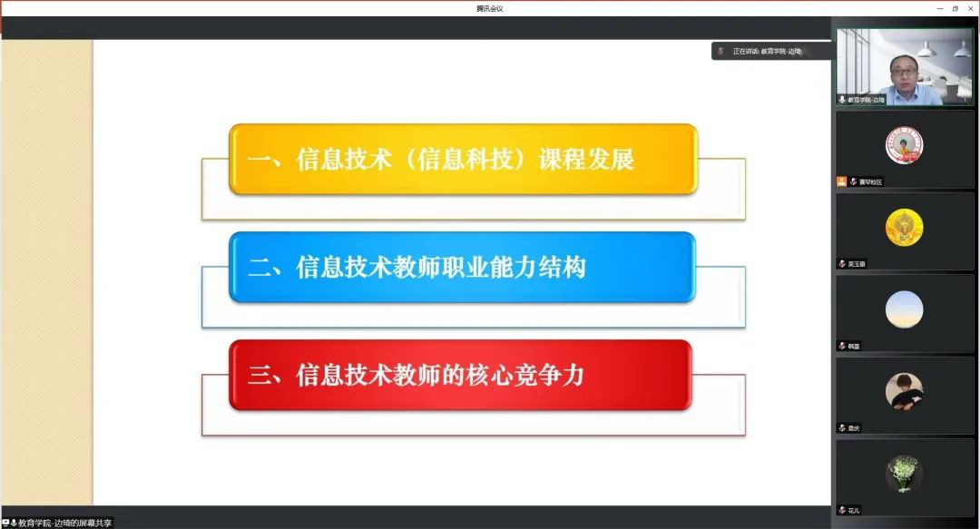 讲座中,边教授首先回顾了自1982年以来信息技术课程的发展历史。在此基础上,以现阶段中小学教学要求为导向,边教授分析了中小学校对信息技术教师的职业能力要求以及高校对计算机科学教育师范生的培养目标。最后,边教授重点讲解并与太阳官网“课程论”建设方向的教师深入探讨了关于如何提升信息技术教师核心竞争力的培养重点。本次讲座为太阳官网的师范生培养工作带来了很多思考与启发。