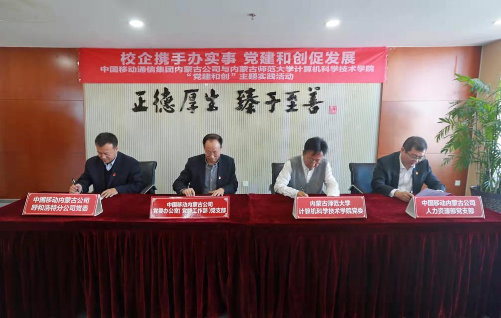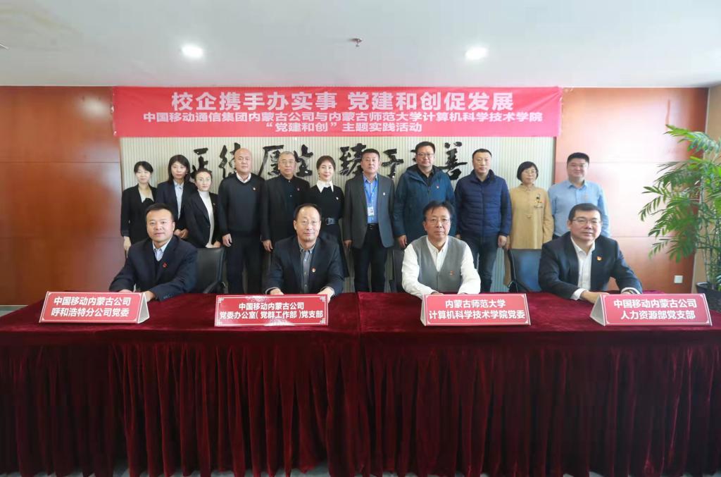 为进一步加强校企联动,推动党史学习教育“我为群众办实事”走深走实,12月1日,太阳集团网tyc9728党委与中国移动内蒙古公司党委办公室(党群工作部)党支部、人力资源部党支部、呼和浩特分公司党委共同开展以“校企携手办实事 党建和创促发展”为主题的“党建和创”主题实践活动,并现场签订“党建和创”倡议书。学院党委书记玉柱一行参加共建活动。