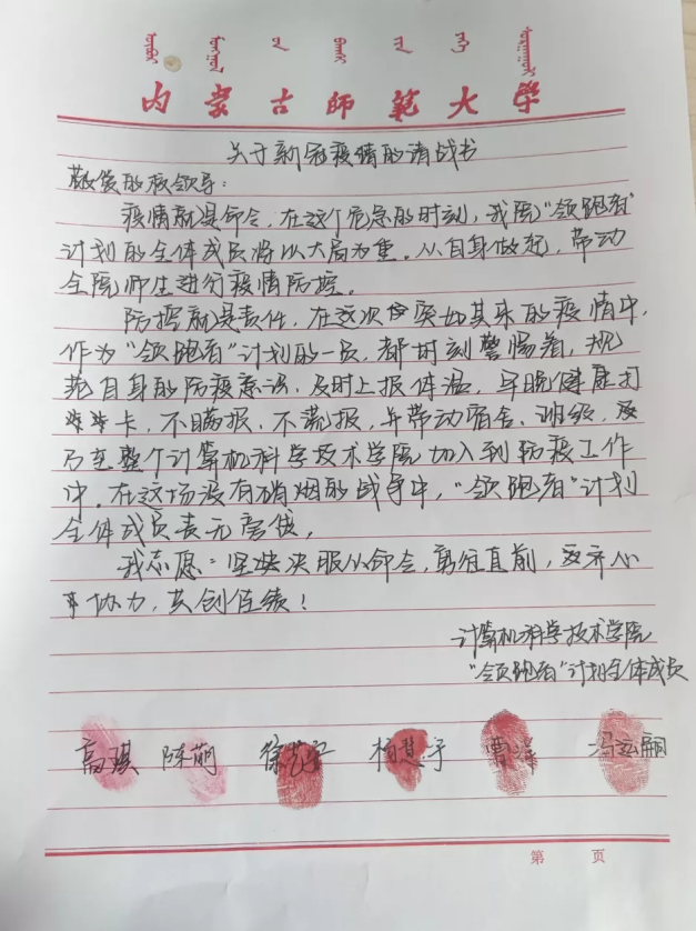 面对我区形势严峻的新冠肺炎疫情,太阳集团网tyc9728学生党员、团员青年、各级学生干部、IT青媒中心、退伍军人、社团成员、“领跑者”计划学员纷纷请战参与学校疫情防控志愿服务工作。他们用自己执着的坚守、务实的行动,为构筑学校安全防线贡献着自己的青春力量,彰显了计科学子的精神面貌和责任担当。