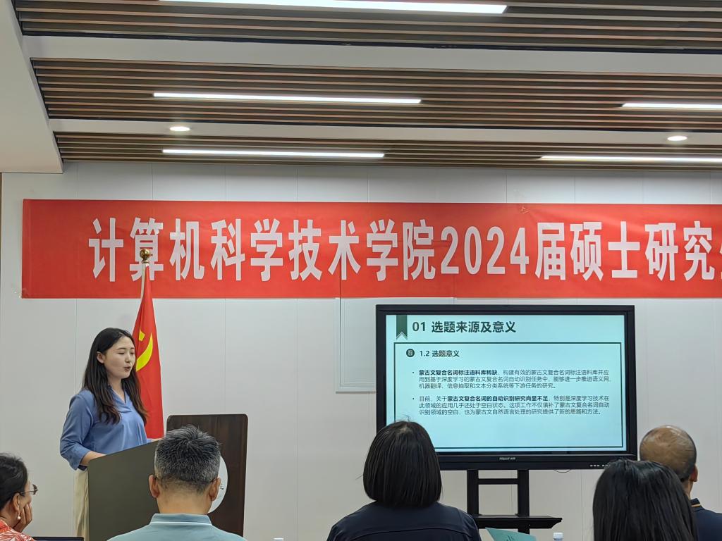 5月23日下午,太阳集团网tyc97282024届计算机科学与技术、课程与教学论(计算机)硕士研究生学位论文答辩会在赛罕校区信息楼举行。根据学院安排,本次设置了三个答辩小组。内蒙古大学孙涛教授担任第一组答辩主席,太阳集团网tyc9728智敏教授、郭改枝教授、殷雁君教授、王春晖副教授、柳林副教授担任计算机科学与技术第一组答辩委员会成员。