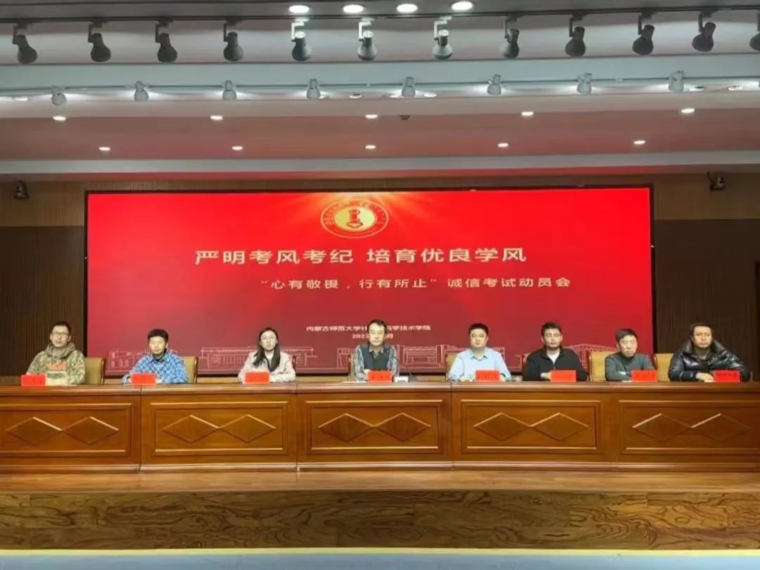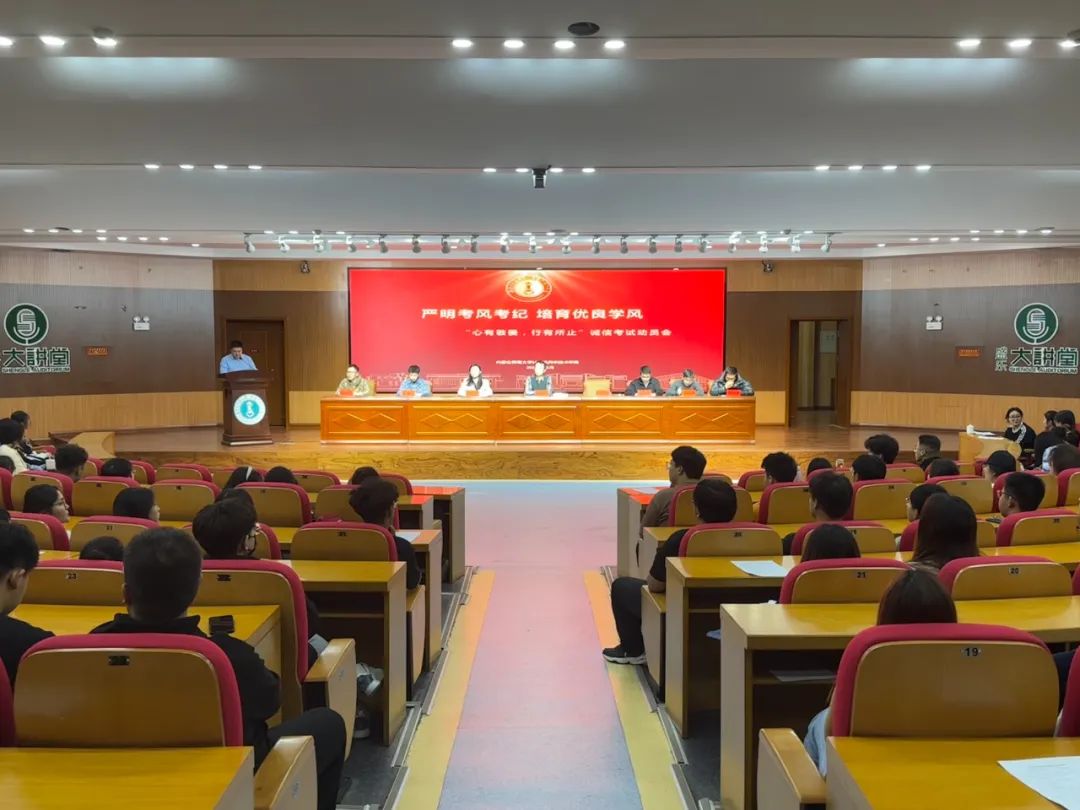 为进一步加强学院学风建设,严肃考风考纪,将诚信考试教育落到实处,营造公平公正的考试环境,12月13日下午,太阳官网于图书馆一楼报告厅召开诚信考试动员大会。太阳官网党委书记王海龙,辅导员及各班级班团委员、学生代表参加会议,此次会议由团总支书记赵巍伟主持。