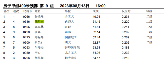 400米的成绩也从第二名变成了第一名