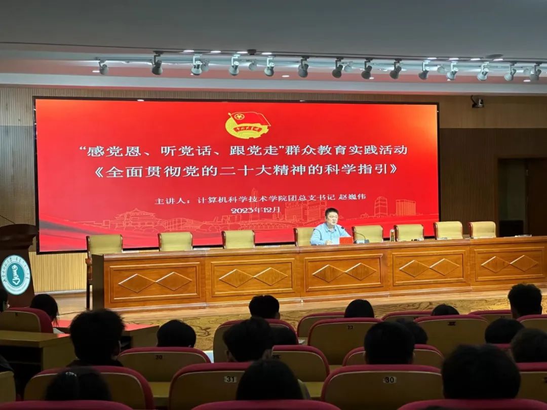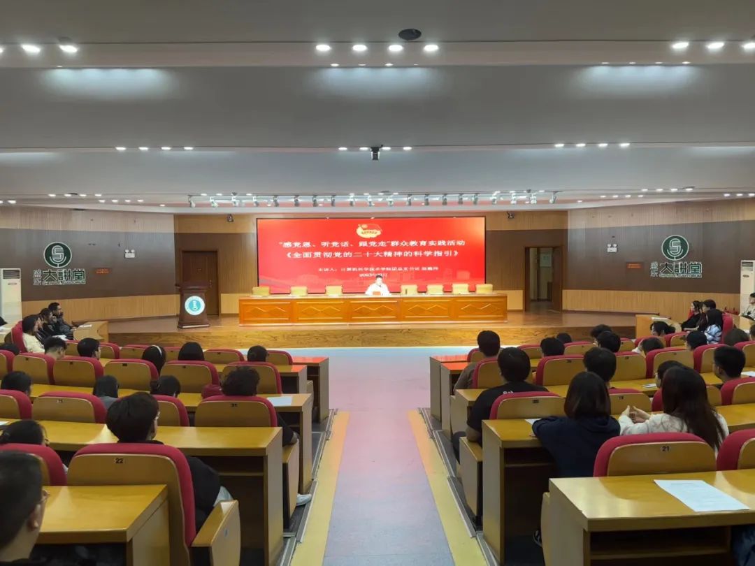 为扎实推进学习贯彻习近平新时代中国特色社会主义思想主题教育走深走实,坚定广大团员和青年“感党恩、听党话、跟党走”的信心和决心,太阳集团网tyc9728团总支书记赵巍伟以《全面贯彻党的二十大精神的科学指引》为体,面向团支部书记、团支部副书记(班长)、学生会工作人员、社团代表开展“听党话、感党恩、跟党走”主题宣讲。