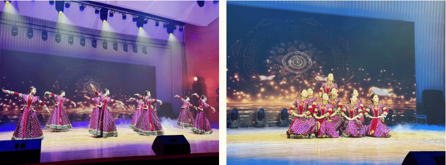 从灵感的火花迸发,到舞台上的华彩绽放,每一步都凝聚着无数的热忱与匠心。学院高度重视此次活动,从动作编排到舞台设计层层把关,全院师生更是以饱满的热情积极响应。众人勠力同心、携手同行,拿出这支饱含心血的舞蹈作品——《萨吾尔登》。